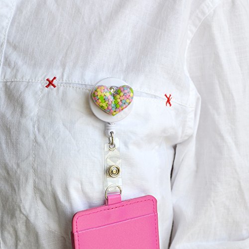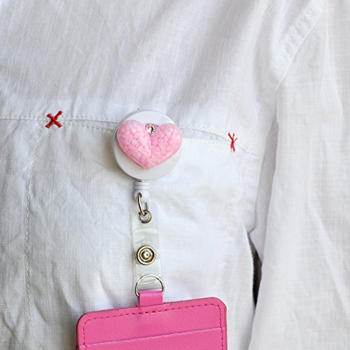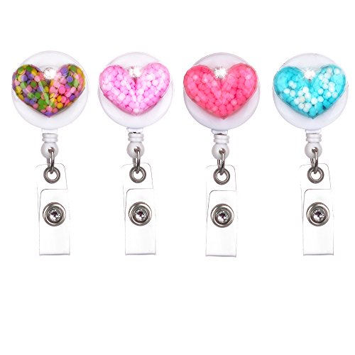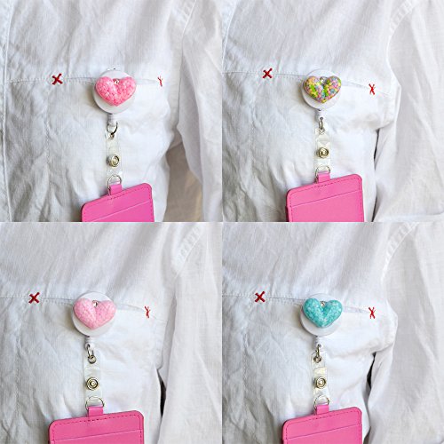 Qinsuee Love Heart Retractable ID / Name Badge Holder with Alligator Clip, 4 Pack