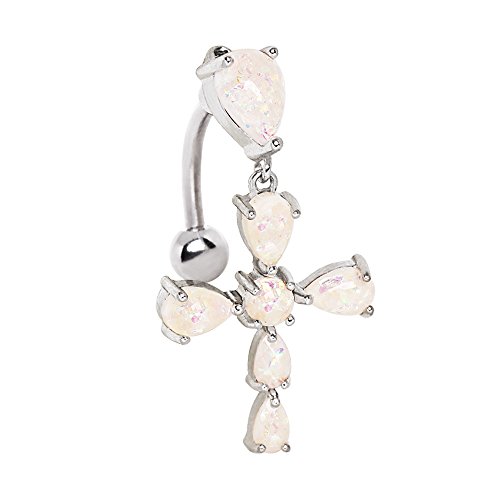 (Cocobul Body Jewelry)/Accessories/Belts Buckles/DIRECT FROM USA/316L Stainless Steel White Synthetic Opal Cross Top Down Belly Button Navel Ring