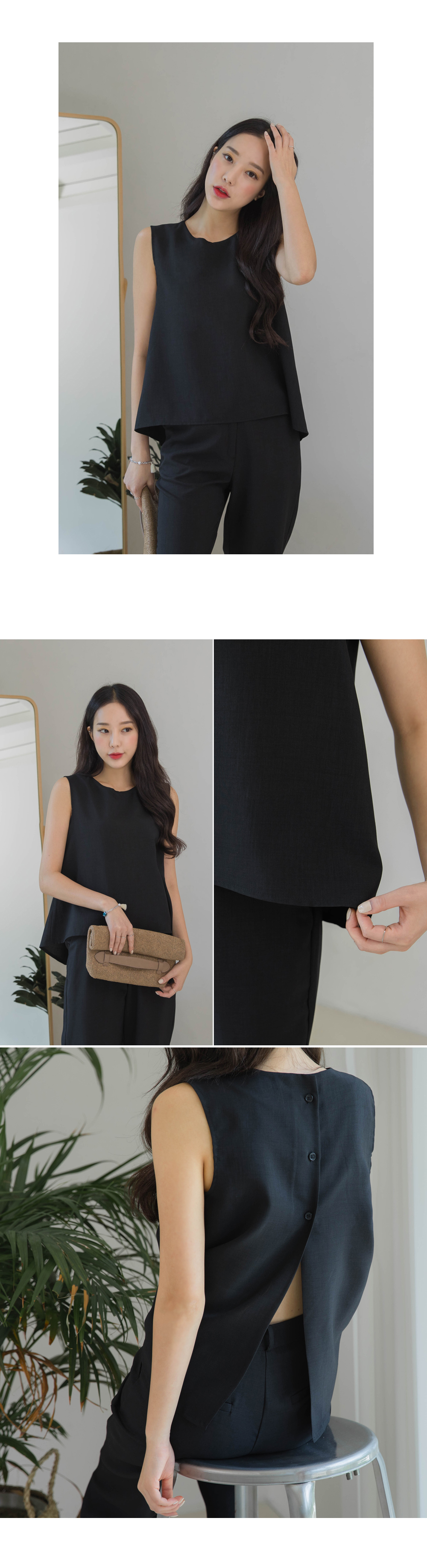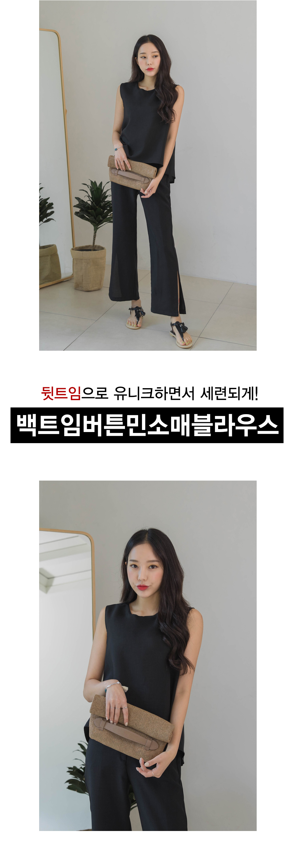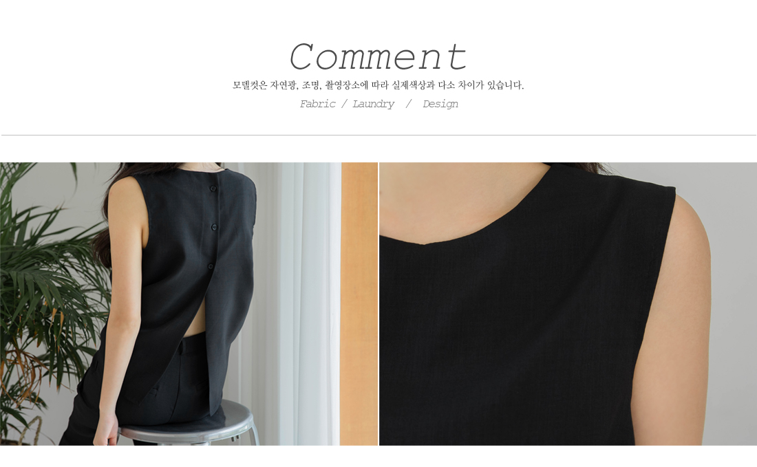 백라인에 트임디테일과 버튼디테일로 포인트를 주어
