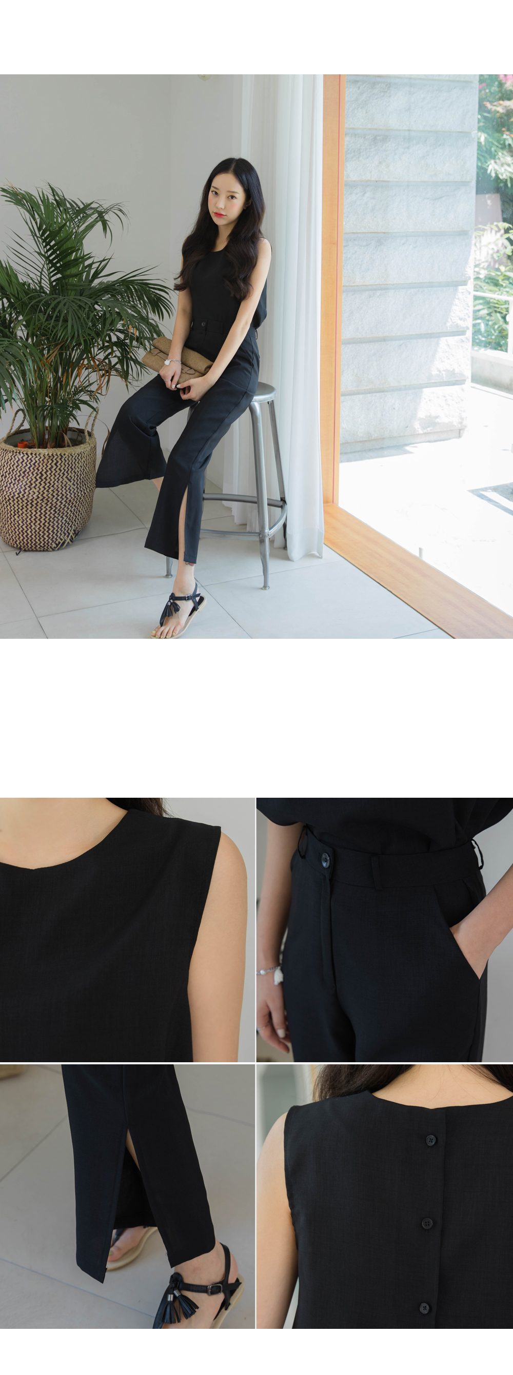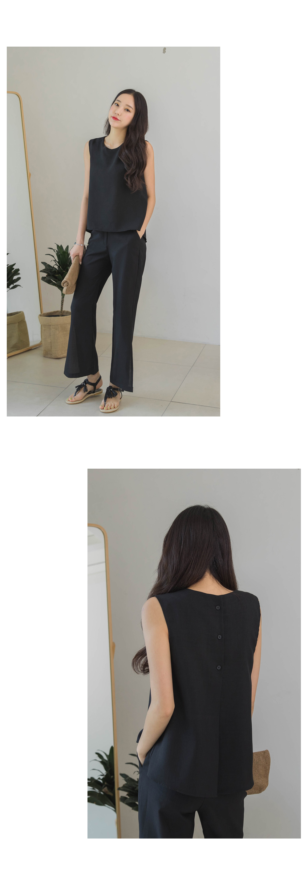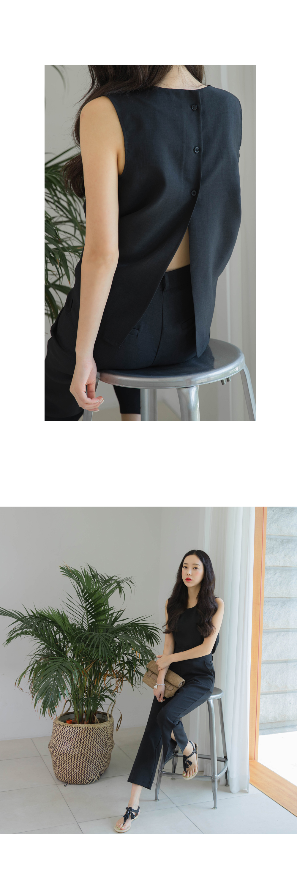 백라인에 트임디테일과 버튼디테일로 포인트를 주어