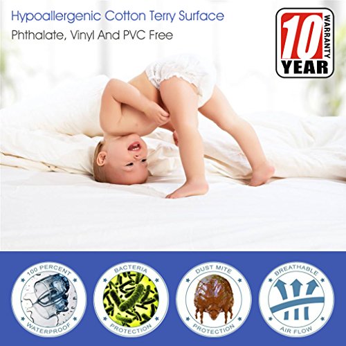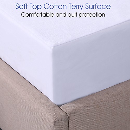●100% Waterproof Breathable Protection Guard the top of your mattress from spills and stains with 100% waterproof protection that is soft, quiet and breathable. Terry fabric is backed by a waterproof barrier that blocks fluids to preserve your mattress. Soft and silent protection that doesn't disrupt your valuable sleep.