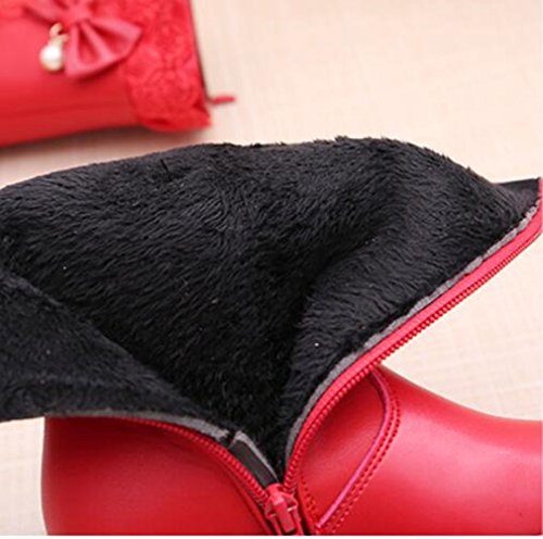 -. Feature : DURABLE & WATERPROOF: Waterprof upper,a round toe, and stitching details / SIDE ZIPPER & RUBBER SOLES: Finished with prolonged durable rubber soles, convenient side zippers / LOVELY DECORATION DESIGN: Sweet lace bowknot, exquisite and fashionable rhinestone decoration / COMFORTABLE AND WARM INSIDE: Soft,warm and comfortable fur lined,keep your feet warm all day / OCCASION: Holiday travel, outdoors,go out to a guest, campus study.And,send baby, send friends...
