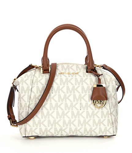 Designed for the women with places to go that's always on the move! Michael Kors Riley Women's Small Satchel is crafted with top handles and a removable should strap for versatile carrying options. This also features: leather, hand painted edges with subtle logo with signature details, zip constructions, 2 inside slide pockets, and inside zip. Comes with MK Signature Logo PVC with Gold-Tone or Silver-Tone Hardware. Michael Kors is a globally awarded designer who produces luxury items that carry unfaltering designs which are sure to withhold the tests of time. These products are built to last and stay up with latest fashions and styles, leaving you with the most desired looks.Feature