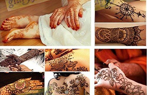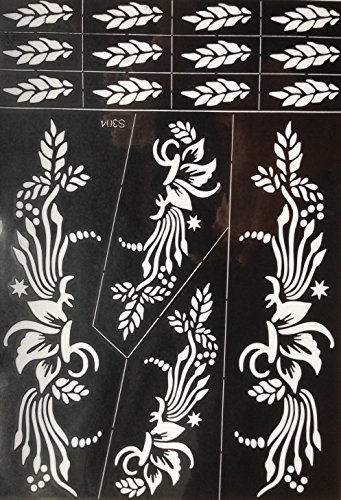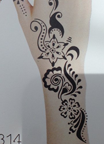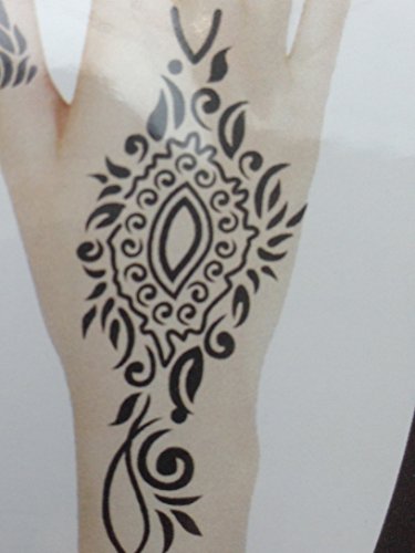 The henna tattoo stencils are self-adhesive and are suitable for Henna Tattoo, Glitter Tattoo and Air Brush Tattoo. USA quality standard. Size: 9 x 6.3 inches /sheet.