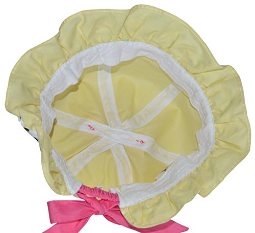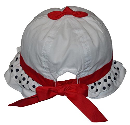 -. Binding : Apparel -. Brand : BePe Baby -. Department : baby-girls -. Feature : 100% soft cotton fabric / Double ruffled brim, knotted bow at top, flower accent on band / Small measures 19" (48 cm) (1 - 2 Years) / Medium measures 19.75" (50 cm) (2 - 3 Years) / Elastic band back with ties for adjustable fit (adds 1" of additional stretch) -. Model : SH-DBLRFLBRM -. ProductGroup : Apparel -. ProductTypeName : HAT -. Title : BePe Baby Little Girls' Double Ruffled Brim Sun Hat - (1 to 3 Years)