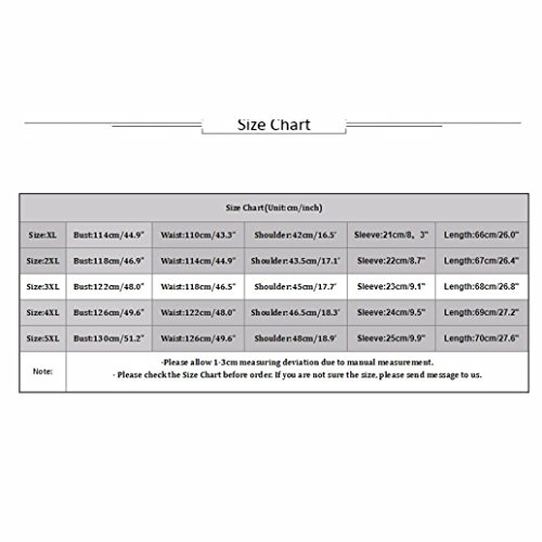 ♥Size:XL Bust:114cm/44.9" Waist:110cm/43.3" Shoulder:42cm/16.5' Sleeve:21cm/8。3" Length:66cm/26.0"