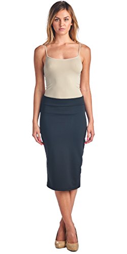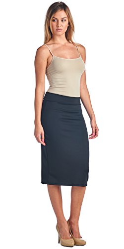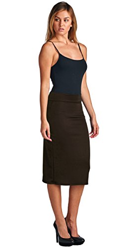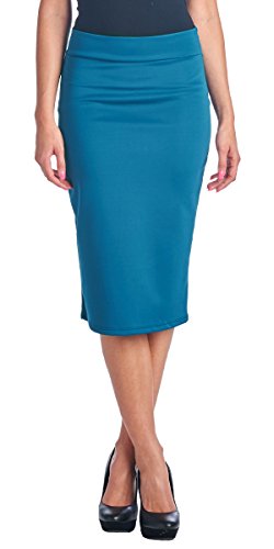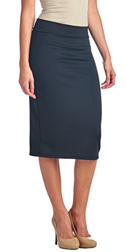 -. Title : Popana Mid Length High Waist Women's Solid Pencil Skirt - Made in USA