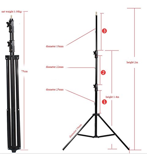 Specifications: Flash Output: 300WS Guide Number (ISO 100): 65 Color Temperature: 5600 ± 200K Power Voltage: AC200~240V / 50HZ Power Output Control: OFF, 1.0-3.0 (1/8 - 1/1) Modeling Lamp: 150W / 9 Levels (1 - 9) Recycle Time: 0.4-3s Triggering Mode: Sync cord, Test button, Slave triggering, Wireless control port Flash Duration: 1/2000s - 1/800s Fuse: 5A 3x 2m 304 Light Stand Maximum height is 6.5 feet, fold down to 28 inches for easy portability. Professional quality aluminum frame with black satin finish. Simple quick-release levers provide fast precise height adjustment. Extra wide angle footprints with rubber tips for more stability. Folding frame design for freewill lighting position setting and easier storage. 2x 60*90cm softbox Mount : Bowens Mount Every softbox comes with:1 x 60x90cm Softbox,4 x Steel Rod Set,1 x Bowens Mount Speedring,1 x Carrying bag