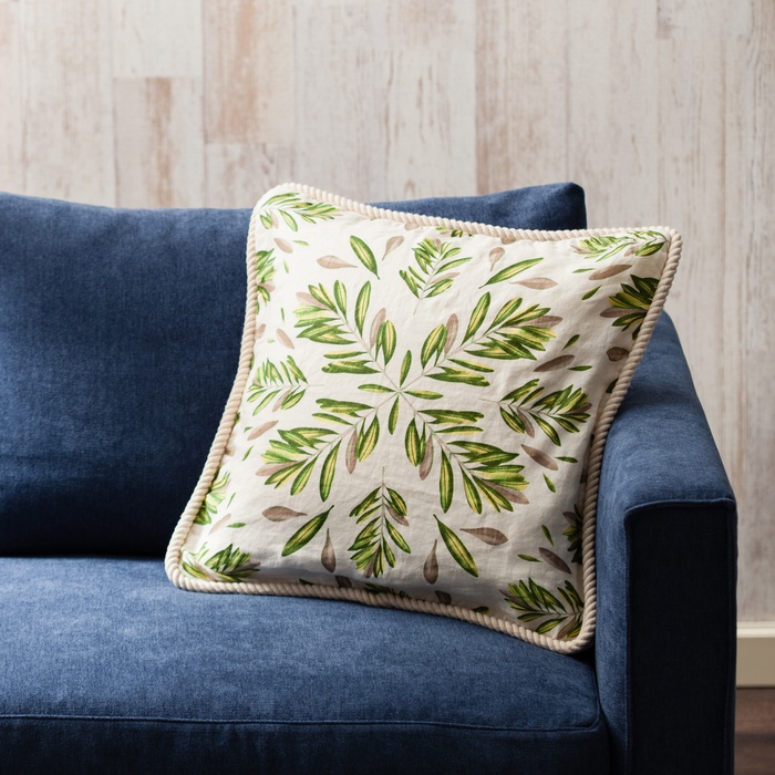 린넨 원단으로 올리브무늬를 프린트 한 쿠션 커버입니다.