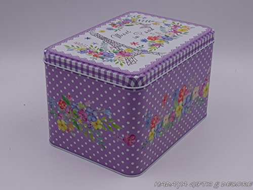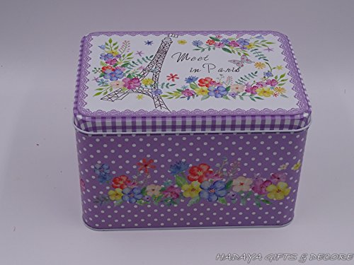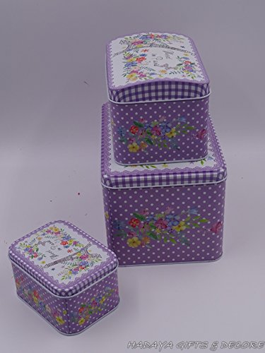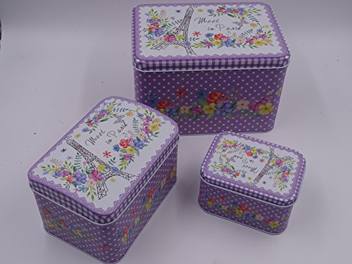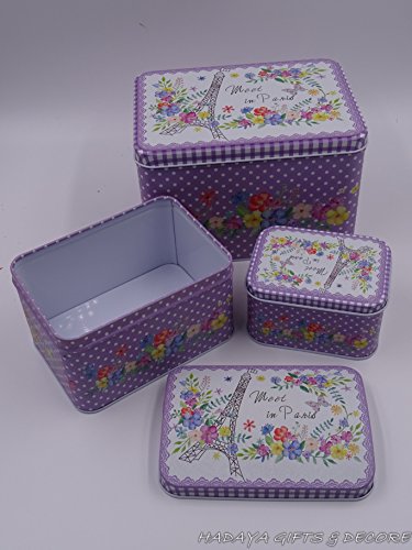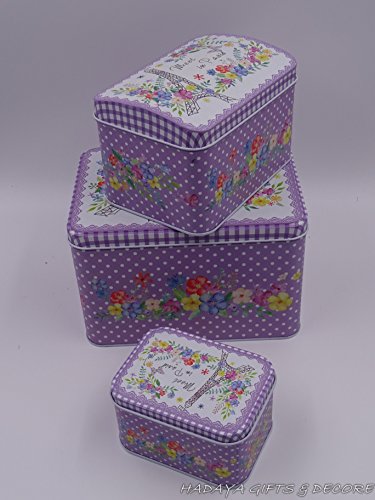 Beautiful Paris themed French Style Purple multipurpose storage tins, shabby chic, Set Of 3 with beautiful floral design