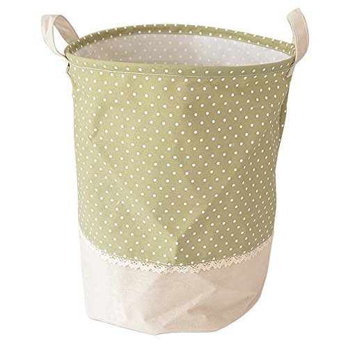 -. Feature : Laundry Basket Size: 14" x 17" / Material: Cotton and linen. Durable and lightweight. / Two handles for carrying, and a drawstring on the top with cord lock, can close it up completely. / Advantage: Folds down to a small package when not in use. / Multi use, perfect for not only clothes but toys and sporting goods.