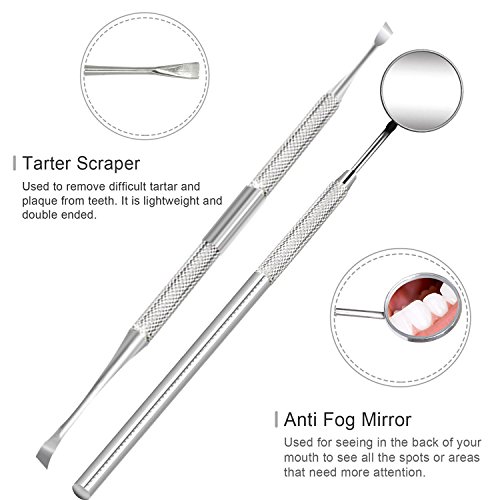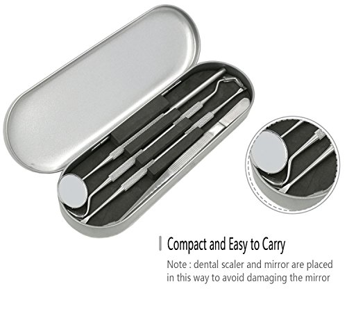 ►What You Get – 1x Metal Case, 1 x Anti-fog Mouth Mirror, 1 x Tartar Remover, 1 x Dental Scaler, 1 x Tweezer