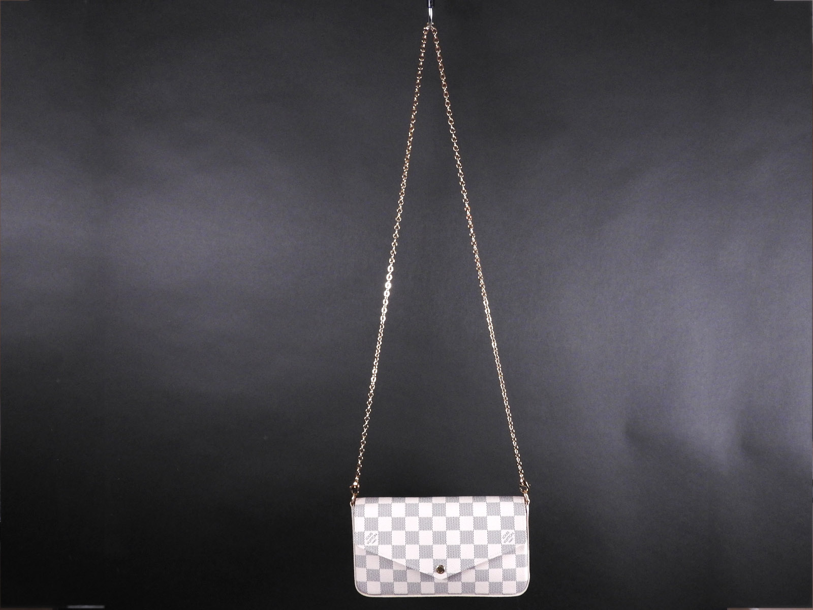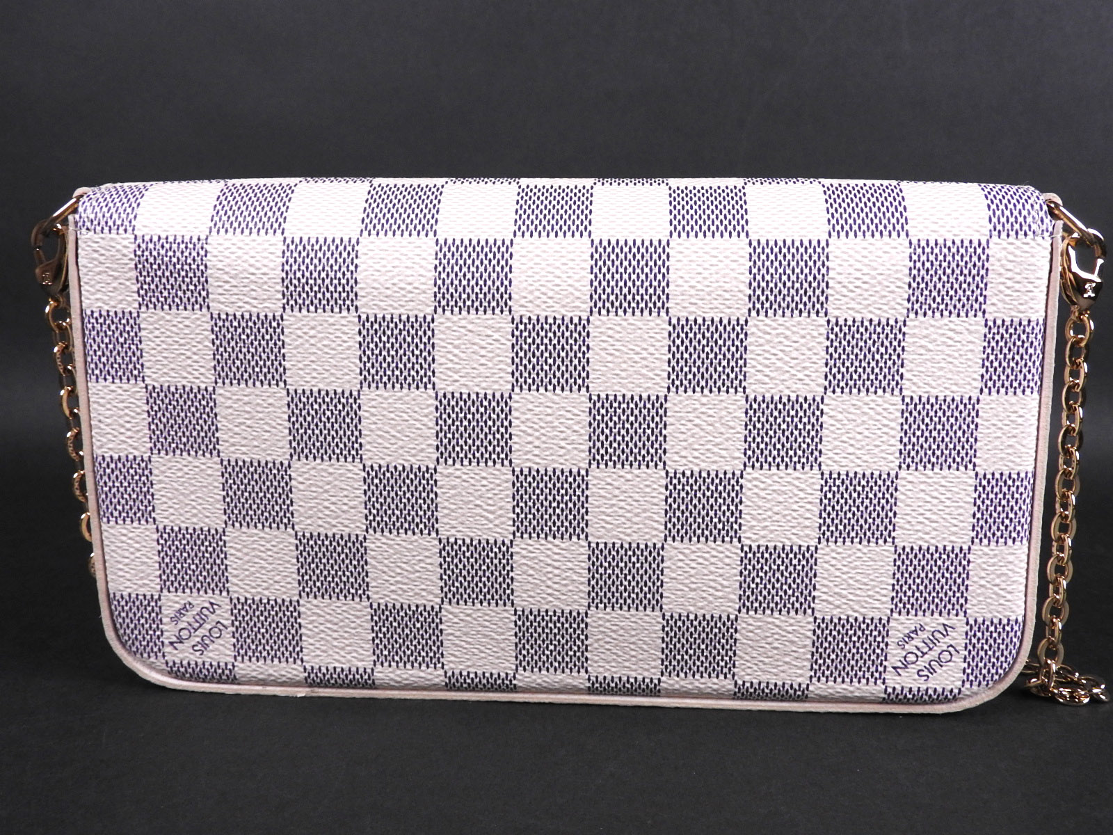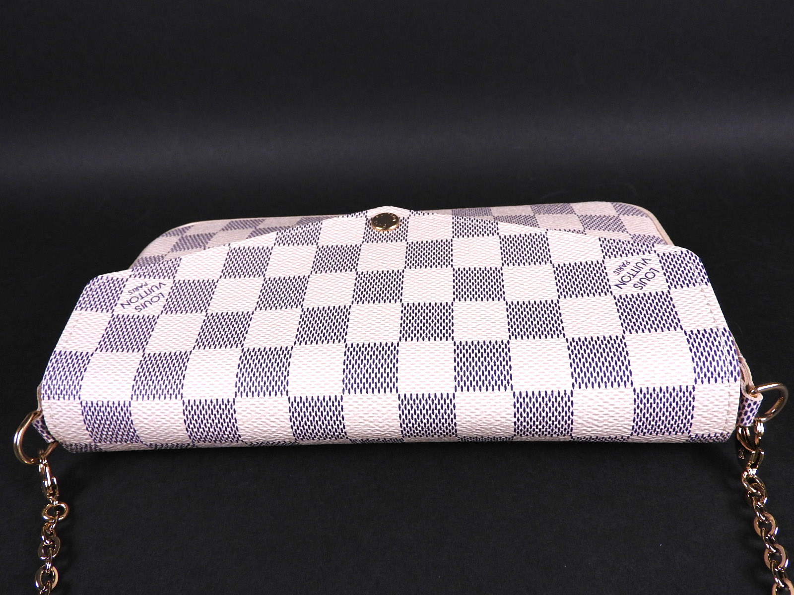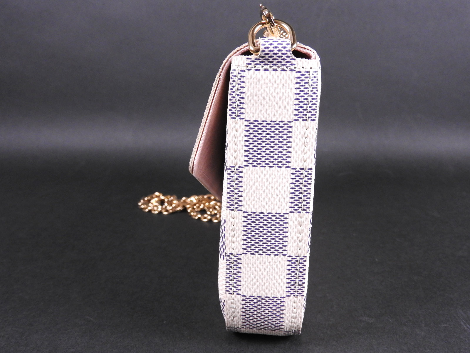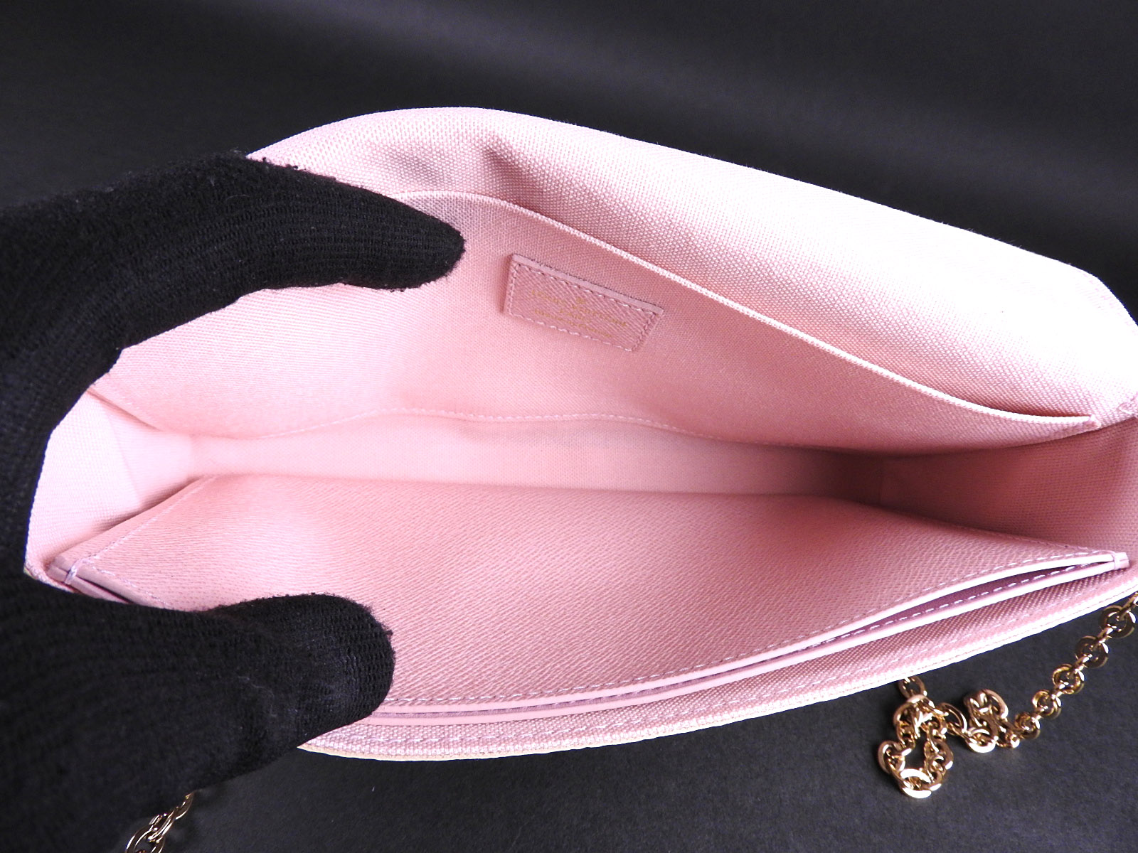Auth LOUIS VUITTON Unused Pochette Felicie Chain Hand Bag Shoulder Bag Clutch Bag Damier Azur Rose Ballerina N63106 A-7689