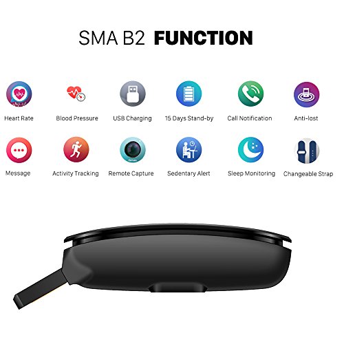 -. Title : SMA-B2 Fitness Tracker Smart Wristband,Blood Pressure,Dynamic Heart Rate,IP68 Waterproof,USB Charging,Activity Tracking,Smart Bracelet Compatible with iPhone/Android,for Men/Women