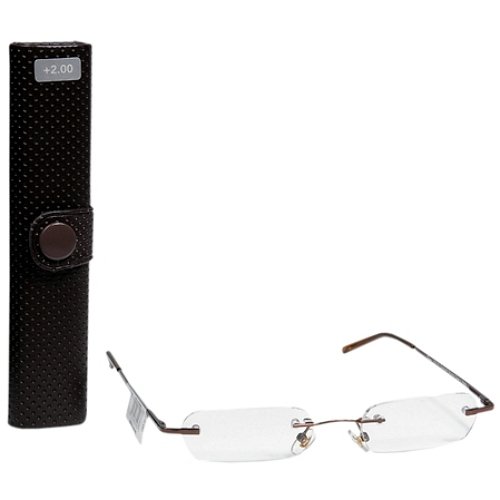 -. Feature : Ready-to-wear / Non-prescription / +2.00 strength / Comes with slim brown case