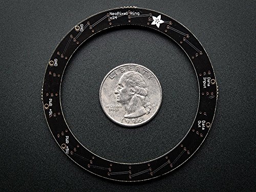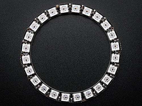 Round and round and round they go! 24 ultra bright smart LED NeoPixels are arranged in a circle with 2.6" (66mm) outer diameter. The rings are 'chainable' - connect the output pin of one to the input pin of another. Use only one microcontroller pin to control as many as you can chain together! Each LED is addressable as the driver chip is inside the LED. Each one has ~18mA constant current drive so the color will be very consistent even if the voltage varies, and no external choke resistors are required making the design slim. Power the whole thing with 5VDC and you're ready to rock.There is a single data line with a very timing-specific protocol. Since the protocol is very sensitive to timing, it requires a real-time microconroller such as an AVR, Arduino, PIC, mbed, etc. It cannot be used with a Linux-based microcomputer or interpreted microcontroller such as the netduino or Basic Stamp. Our wonderfully-written Neopixel library for Arduino supports these pixels! As it requires hand-tuned assembly it is only for AVR cores but others may have ported this chip driver code so please google around. An 8MHz or faster processor is required.