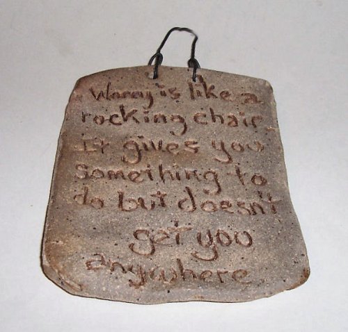 - Title : Aunt Chris' Pottery - Handmade Rustic Clay Plaque - With Unique Sayings or Quote - "Worry Is Like a Rocking Chair, It Gives You Something to Do but It Doesn't Get You Anywhere" - Wall Hanging - Hand Etched ==
