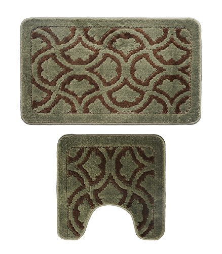 Y&K Decor Bathroom 2 Pieces Bath Rug Pedestal Mat Set Contour and bath mat Aqua Brown