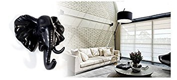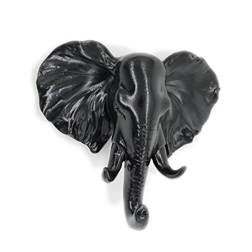 ZOZ Elephant Head Single Wall Decoration Hook Animal Shaped Resin Hanger (Black)