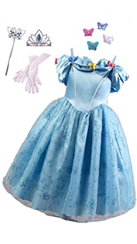 -. Feature : 2-Piece set: Cinderella dress featuring back zipper and butterfly hair clips. / 5-Piece set: Cinderella dress featuring back zipper, butterfly hair clips, tiara, wand and gloves set. / Assembly required.