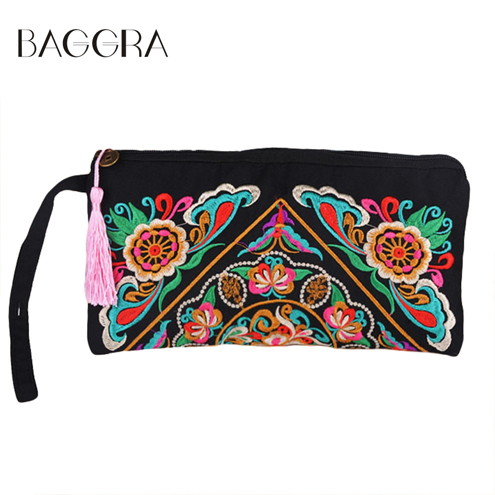 BAGGRA National Two Side Embroidery Bag Women Messenger Bags Contrast Color Women Clutch Handbag Casual Cross Shoulder Small Bag