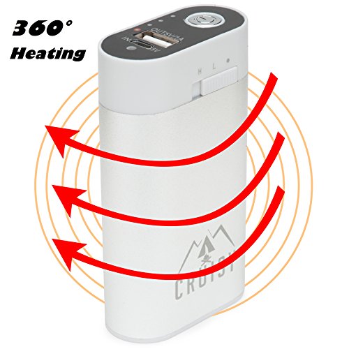 -. Feature : MORE THAN JUST A POWER BANK: Cruisy 5200mAh power bank is not just a power bank, it is a lot more. It is the perfect multi tool for your outdoor trips. It is a power bank mobile charger, a hand warmer and a mini flash light all rolled into one. / HAND WARMER: The power bank has an built-in hand warmer function that keeps your hands warm in freezing weather. Its electronic system is made to keep your hands warm at a constant temperature without burning or overheating. It has two temperature settings - 105F and 115F, just right for warm hands. / KEEP YOUR MOBILE CHARGED EVERYWHERE: The power bank function of Cruisy will ensure that your mobile phone stays charged even when there is no power to plug it in. The 5200mAh power charger for smartphones will recharge most mobile phones at least twice so you can connect anywhere, anytime. / EMERGENCY LIGHT: Cruisy power bank hand warmer also has a built-in flash light. The LED torch will ensure that you can find your way even in pitch dark. The LED flashlight consumes very little power and will function for days. / GREAT LOOK AND BONUS: With its 3 in 1 functions, Cruisy is useful and easy to carry. Its small and compact size will fit into your pocket. The ergonomic design ensures a perfect fit into your hands when you hold it. It comes with a bonus hand warmer pouch.