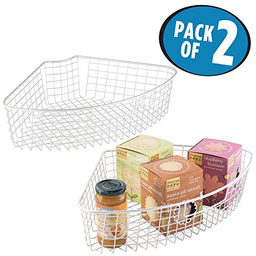 mDesign Lazy Susan Organizing Pantry Basket Wedges - Pack of 2, Matte White