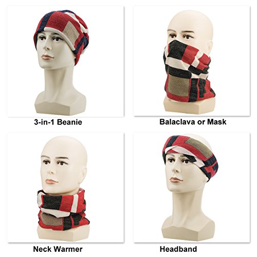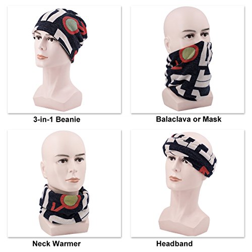 Keep your head warm and your style hot with a fun, versatile 3-in-1 beanie from Jonhen. Whether you spend a lot of time working out, cycling, lifting weights, hiking, or just enjoying being fashionable, a great beanie or head wrap can add just the right touch to keep your hair out of your face or your body a bit warmer. That's why we created the Jonhen 3-in-1 Beanie that quickly converts from head wrap, to neck warmer, to face mask in seconds. Crafted with a premium, breathable blend of polyester and spandex, these flexible beanies are sure to add stylish comfort to all your activities. Product Details: - 3-in-1 Bandana, Balaclava and Neck Warmer