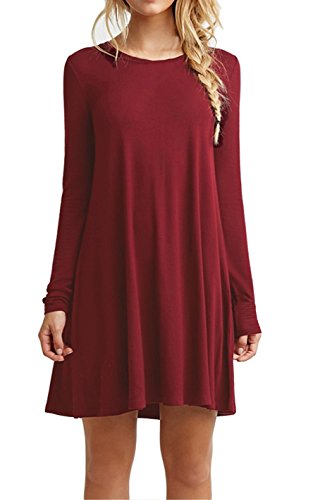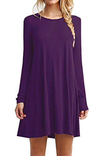 *Women's Basic Short /Long Sleeve Casual Loose T-Shirt Dress.