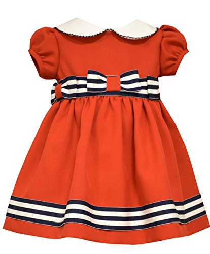 -. Binding : Apparel -. Brand : Bonnie Jean -. Department : baby-girls -. Feature : Beautiful baby girls nautical dress features red puff sleeve dress with rounded collar navy and white stripe sash and bows. Precious! / Bonnie Jean Baby Girls Red Stripe Bow Dress -. Label : Bonnie Jean -. Manufacturer : Bonnie Jean -. MPN : R06715 -. PartNumber : R06715 -. ProductGroup : Apparel -. ProductTypeName : DRESS -. Publisher : Bonnie Jean -. Studio : Bonnie Jean -. Title : Bonnie Jean Baby Girls Red Stripe Bow Dress