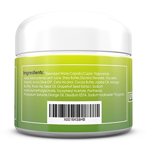 This indulgent, creamy lotion will improve skin complexion and deliver healthy, soft skin through regular use. Improving the elasticity of the skin is also an effective aid in preventing stretch marks and scarring. Shea butter and cocoa butter are widely used not only for powerful moisturizing properties, but also for their abilities to heal and correct skin imperfections. Our formula also includes soothing aloe, jojoba oil, mango butter, and organic olive oil. Aloe Vera prevents premature aging, moisturizes skin, reduces acne and can help lighten blemishes and can help reduce stretch marks. Shea Butter can help cure skin rashes, peeling after sunburn or tanning, help with scars and stretch marks, eases frost bite and burns and moisturizes skin. Organic Olive Oil is great for anti-aging, helps to soften and smooth. Cocoa Butter can prevent skin aging, dark skin spots and stretch marks. It is deeply hydrating which aids in the skin's ability to heal itself and prevent a dull appearance. Mango Butter moisturizes the skin. It helps heal blemishes and has a soothing effect. Rose Hip Seed Oil is great for moisturizing skin and it's effect helps the skin lose its dull appearance without a heavy feeling moisturizer. Grapefruit Seed extract can help heal skin wounds. Orange Oil is great for acne and also helps to detoxify your skin.Feature