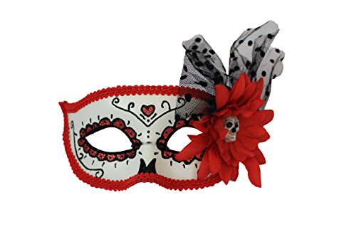 -. Brand : Spurs Girl -. Color : Red,white,black -. Department : Unisex-baby -. EAN : 0715202160420 -. Feature : Red Dia De Los Muertos Mask o/s (Day of The Dead) / Black Veil, / Pink Flower w/ Skull / elastic band -. PackageQuantity : 1 -. ProductGroup : Apparel -. ProductTypeName : ADULT_COSTUME -. Size : One Size Fits All -. Title : Red Dia De Los Muertos Mask o/s (Day of The Dead) -. UPC : 715202160420