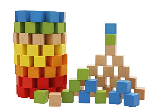 -. Feature : 100 hard wood blocks, non-toxic paints. Package size 14.9*2.5*11.8 inches, each cube block size 0.98*0.98*0.98 inches / Blocks comes in six colors ,Red,Orange,Yellow,Wood,Green,Blue / Develops fine motor skills, spatial relationships, teaches shapes,math, colors, sorting and more / Stack them up, and knock them down,great fun for kids / Recommended 3 years up