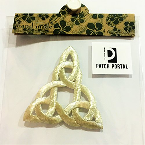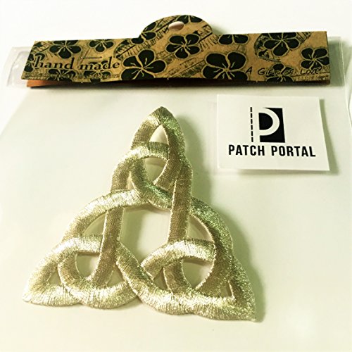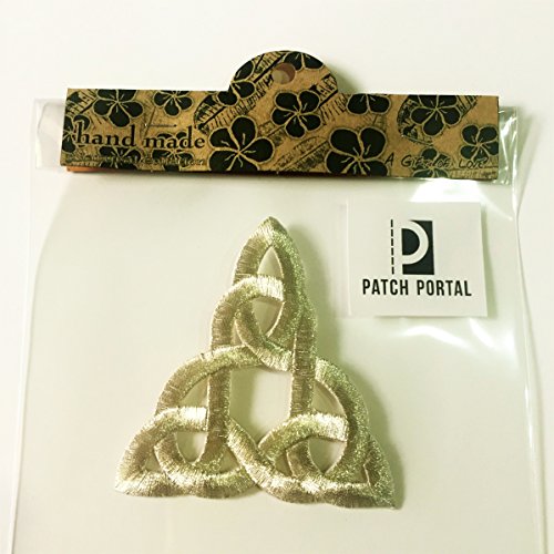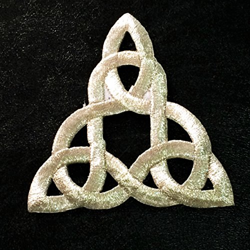Patch Portal Silver Celtic Knot 3 Inch Irish Tattoo Pattern DIY Embroidered Applique Trinity Stencil Triquetra Gothic Sew Iron On Patches for Jackets Hats Cloth