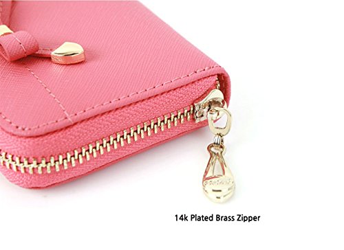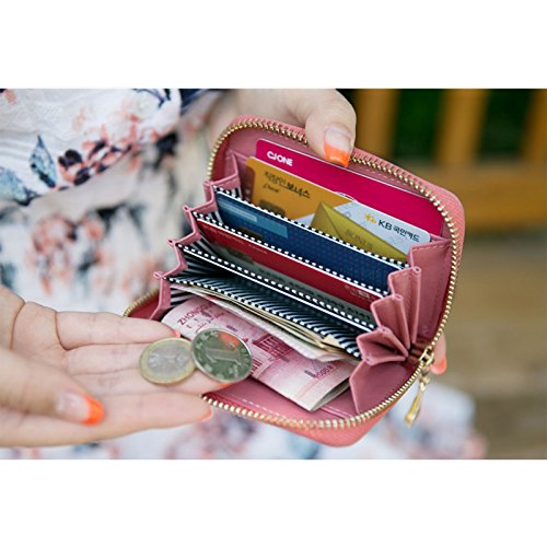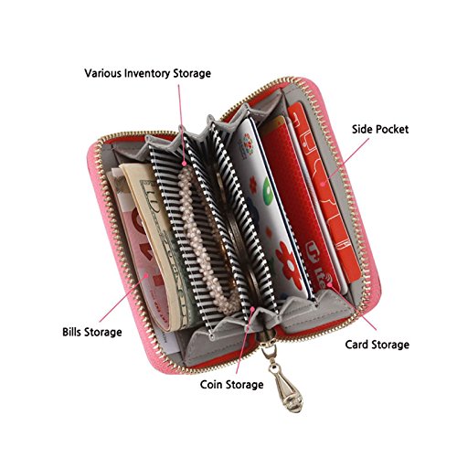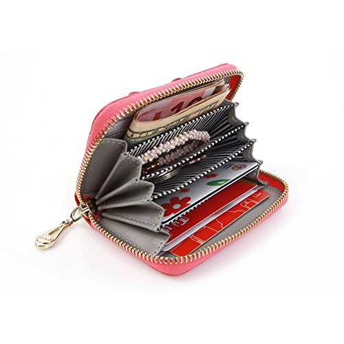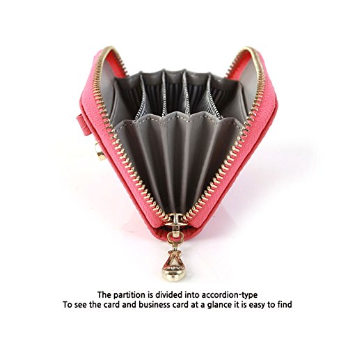 Honey Milk Leather Accordion Type Zipper Card Wallet Useful Credit Card Wallet Small Purse (Hot Pink)