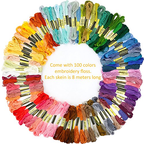 - Set Content – The embroidery floss set including 100 skeins rainbow color embroidery threads along with a set of 44pcs cross stitch kit that is ideal for cross stitch beginners