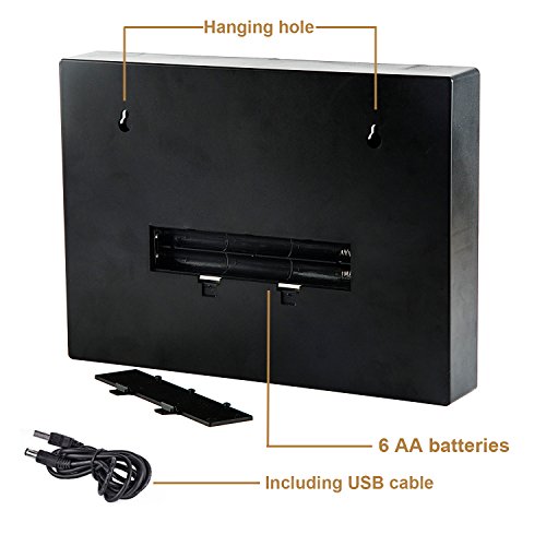 This light box includes: One free combinatino light box Black Letters, Numbers Symbols One USB cable for A4, One USB cable for A6 Not included: 6 x 1.5V AA batteries for A4 4 x 1.5V AA batteries for A6 Safety information: This is a decorative item and shoule not be left unattended. Rechargeable batteries should not be used. Do not mix old and new batteries. Always insert batteries in correct polarity. When the USB connector is being used the batteries must be removed.? Technical details: Item Weight: 500g-A4, 120g-A6 Product Dimensions:A4:30x22x5cm ?A6:15x10.5x4cm Material:PS ABS Light source:SMD LED Working voltage:4.5V Batteries included:NO Certification: CE,ROHS,REACH 0 |