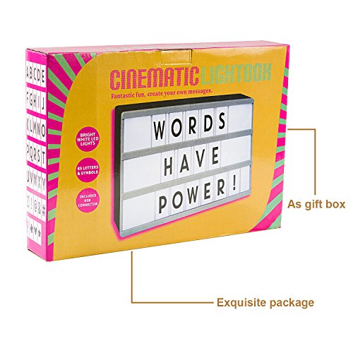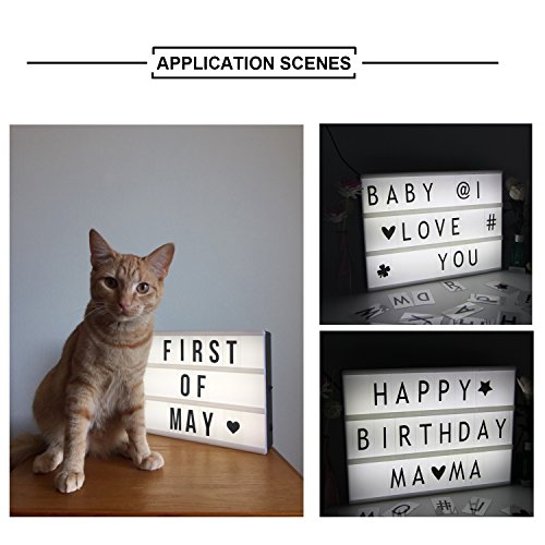 Decorative battery powered LED lightbox with letters,emoji,symbols and numbers for making your very own fun messages.? You can change the messages as often as you like simply by sliding the letters. This is a very nice practical item ?for Household,Anniversary,Special Event and etc.