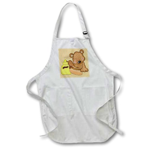 3dRose apr_104468_2 Cute Bear with Hot Dog and Mustard-Medium Length Apron with Pouch Pockets, 22 by 24-Inch