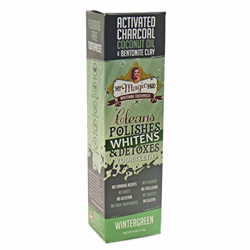 My Magic Mud Activated Charcoal Toothpaste for Whitening, Deep Cleaning, Polishing, Detoxifying, Brighter Teeth, Reduces Sensitivity, All Natural Oral Care, Non-GMO, Wintergreen, 4 oz.
