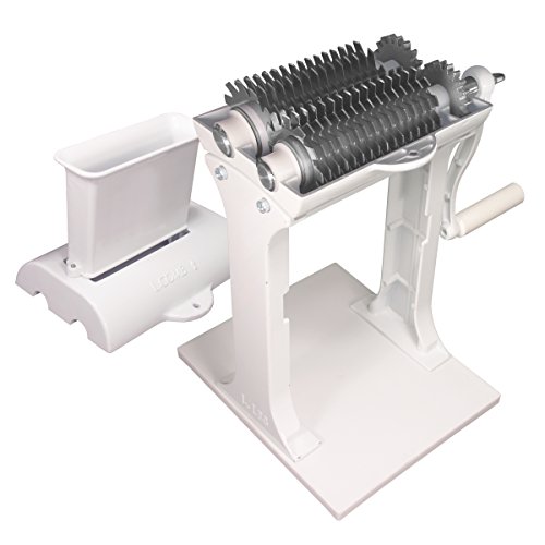 - The meat cuber/tenderizer has a compact design for easy storage and a heavy-duty base and crank handle.