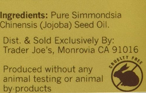 -. Feature : Trader Joe's Spa 100% Pure Jojoba Oil / Pure and natural plant extract / Pure Simmondsia Chinensis (Jojoba) Seed oil. / Produced without an animal testing or animal by-products.