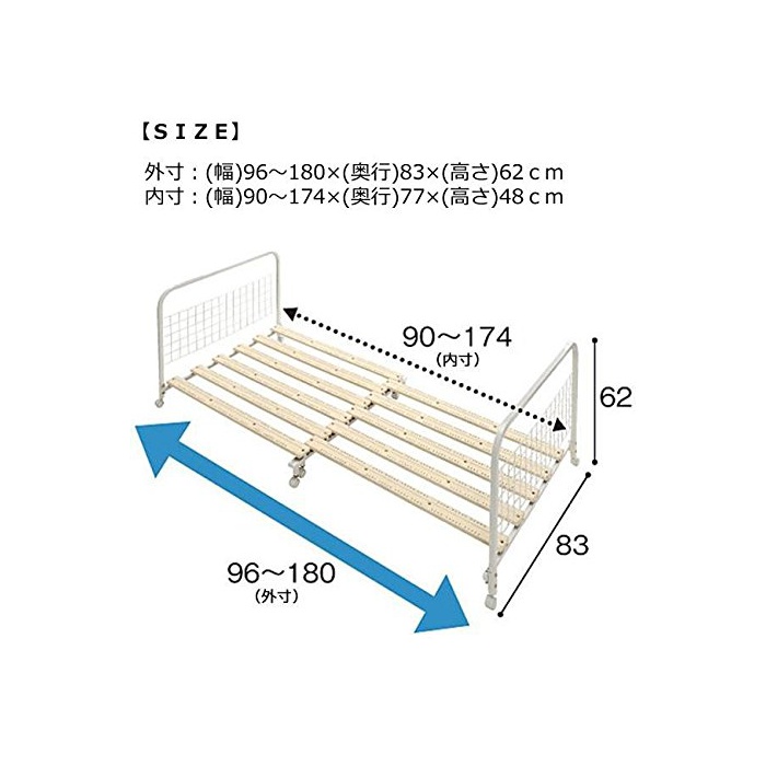 제조국:대만 소재 재질:(스노코)대자리:폴리프로필렌(항균 수지 가공)프레임:스틸(분체 도장) 상품 사이즈:외치수:폭96~180×(길이)깊이83×높이62cm 중량:10kg 사양:조립식 부속품:취급 설명서