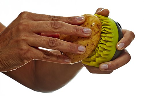 Studio : Uutensil Publisher : Uutensil Product Description Cleaning your fruits and vegetables is made easier with this new Vegetable and Fruit Brush. It has two-way silicone bristles. The placement and width of its silicone bristles are perfectly designed for soft brushing on fruits and vegetables with delicate skin, and for tough cleaning. It can clean even the muddiest vegetables, fruits, and burnt food off bakeware. It has a finger safe eye remover, and the silicone bristles are easy to clean. The brush will not absorb water, and it has antibacterial properties. This product is also dishwasher safe. 0