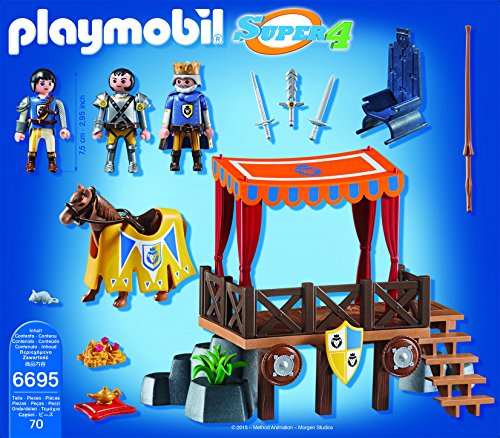 -. Binding : Toy -. Brand : PLAYMOBIL® -. Label : PLAYMOBIL -. Manufacturer : PLAYMOBIL -. Model : 6695-Parent -. ProductGroup : Toy -. ProductTypeName : TOYS_AND_GAMES -. Publisher : PLAYMOBIL -. Studio : PLAYMOBIL -. Title : PLAYMOBIL Super 4 Royal Tribune with Alex Figure Building Kit