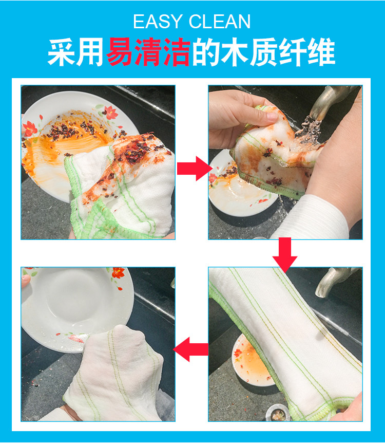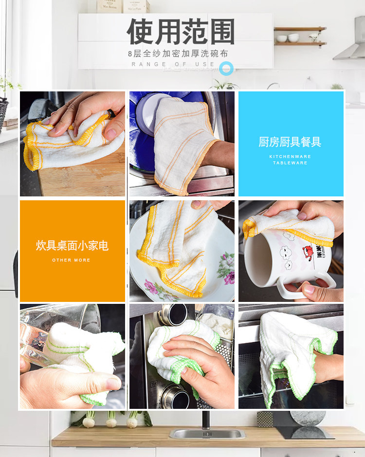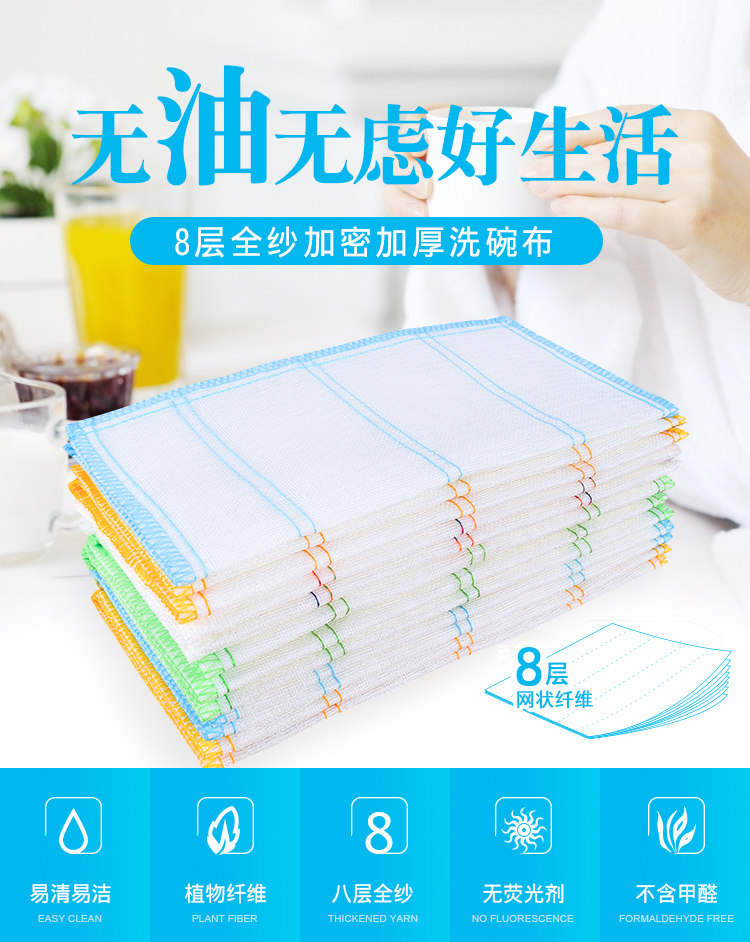 8层加厚清洁布全纱洗碗布不沾油百洁布厨房不掉毛家务抹布10条装