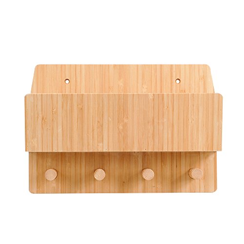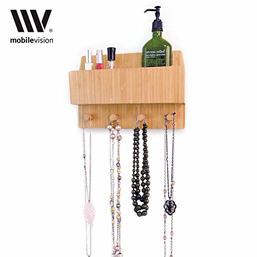 MobileVision Bamboo Jewelry Organizer Wall Mount with Compartment and Storage for Beauty Items, Scarfs, Necklaces, Bracelets, Small Purses, and more