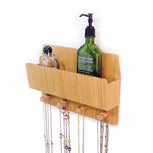 - Keep all your grab-and-go items tangle free and right where you need them to be with the Bamboo Jewelry Organizer. Adorn your entryways or closets with a beautiful display of necklaces, bracelets,scarfs, and small purses. Keep anything from lotions, perfumes, mobile devices, keys, and important documents in the storage compartment, available and easy to get to.