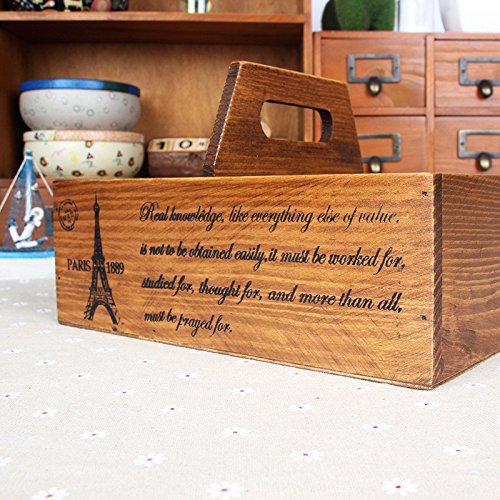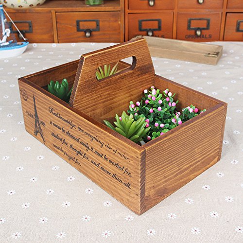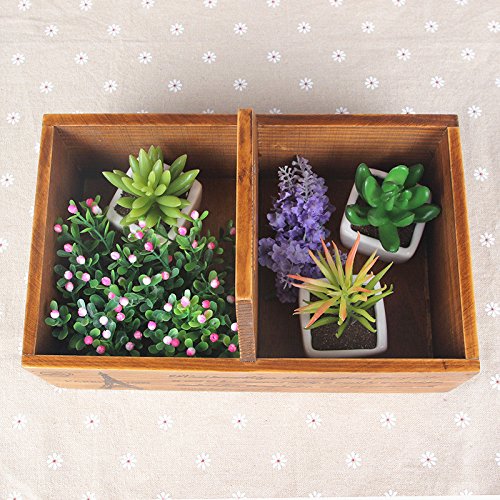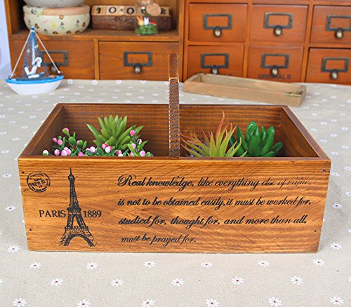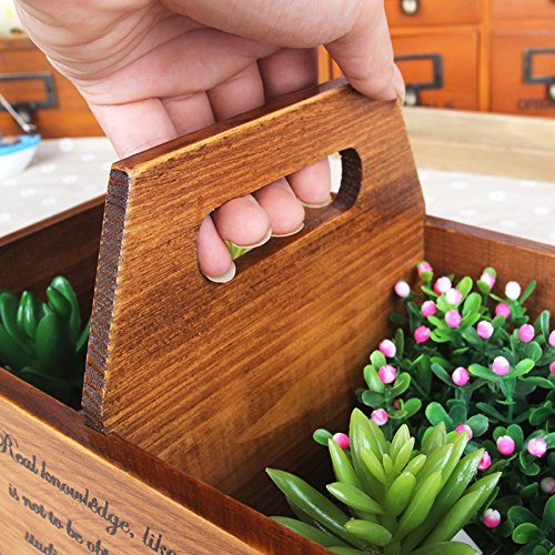 Chris.W Portable Wooden Double Holder Flower Pot w/ Handle, Bonsai Planter for Succulent Plants, 2-Compartment Office/Home Sundries Organizer Basket