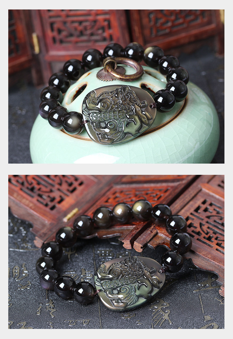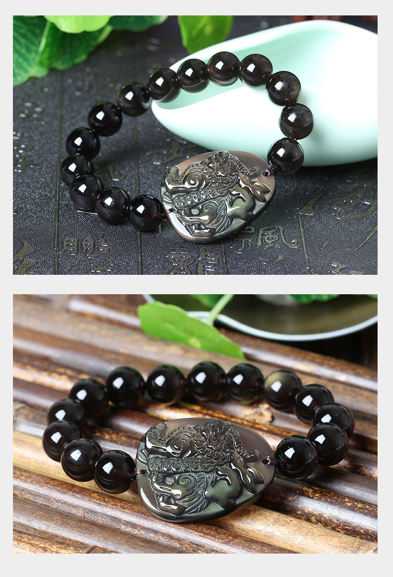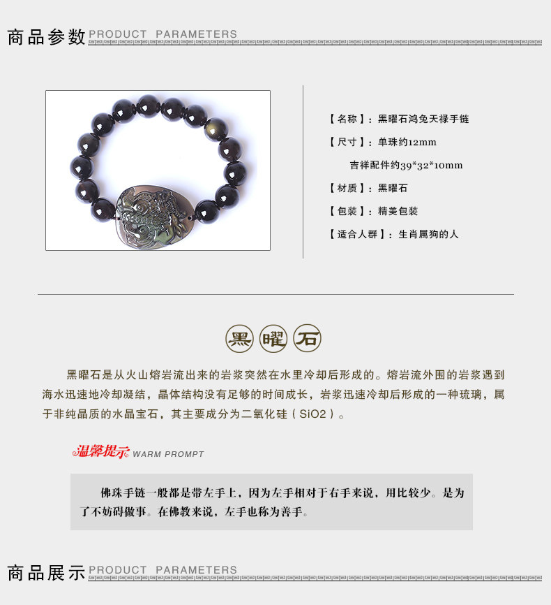 开光鸿兔天禄冰种彩虹眼黑曜石手链属狗人开运吉祥物